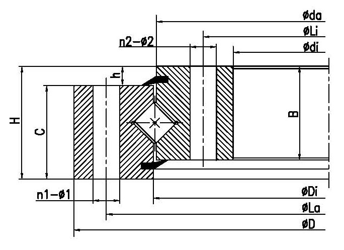 | INA 型號(hào) | LYC 型號(hào) | 外形尺寸(mm) | 安裝尺寸(mm) | 結(jié)構(gòu)尺寸(mm) | 齒參數(shù)(mm) | 額定軸向靜負(fù)荷(KN) | 重量(KG) | | Da | D | di | H | La | Li | n1 | n2 | φ1 | φ2 | D1 | d | b | h | B | C | Di | da | m | z | do | x |