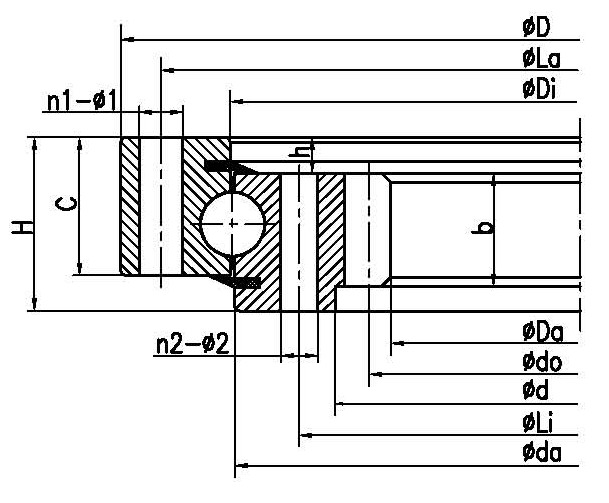 INA 型號Rothe Erde 型號LYC 型號TG 型號外形尺寸(mm)安裝尺寸(mm)結(jié)構(gòu)尺寸(mm)齒參數(shù)(mm)額定軸向靜負荷(KN)重量(KG)